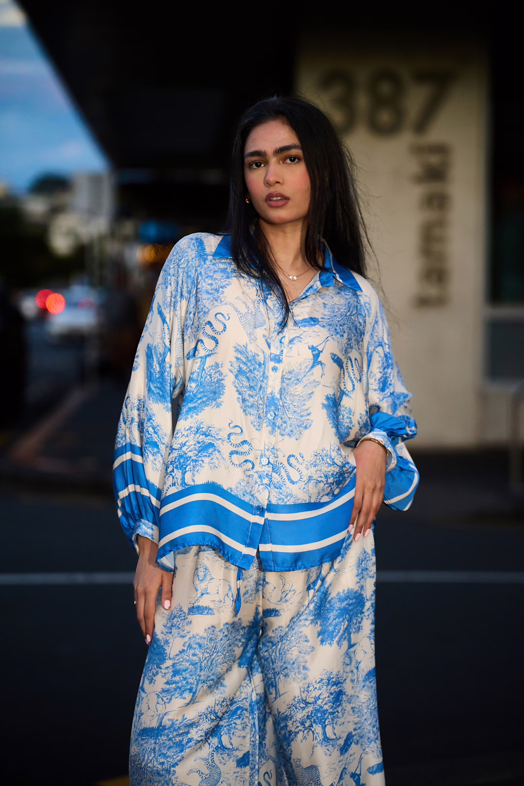 The Muse Toile Shirt combines timeless artistry with a contemporary silhouette. Soft viscose fabric drapes effortlessly while showcasing blue toile-inspired motifs on ivory. Relaxed fit and button-down details make it equally stylish alone or paired with the Bleu Muse Toile Pants for a co-ord look.