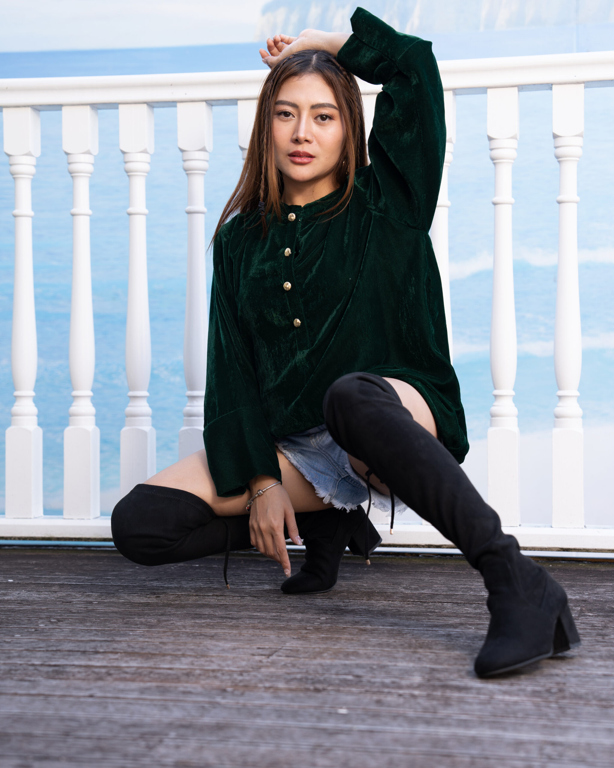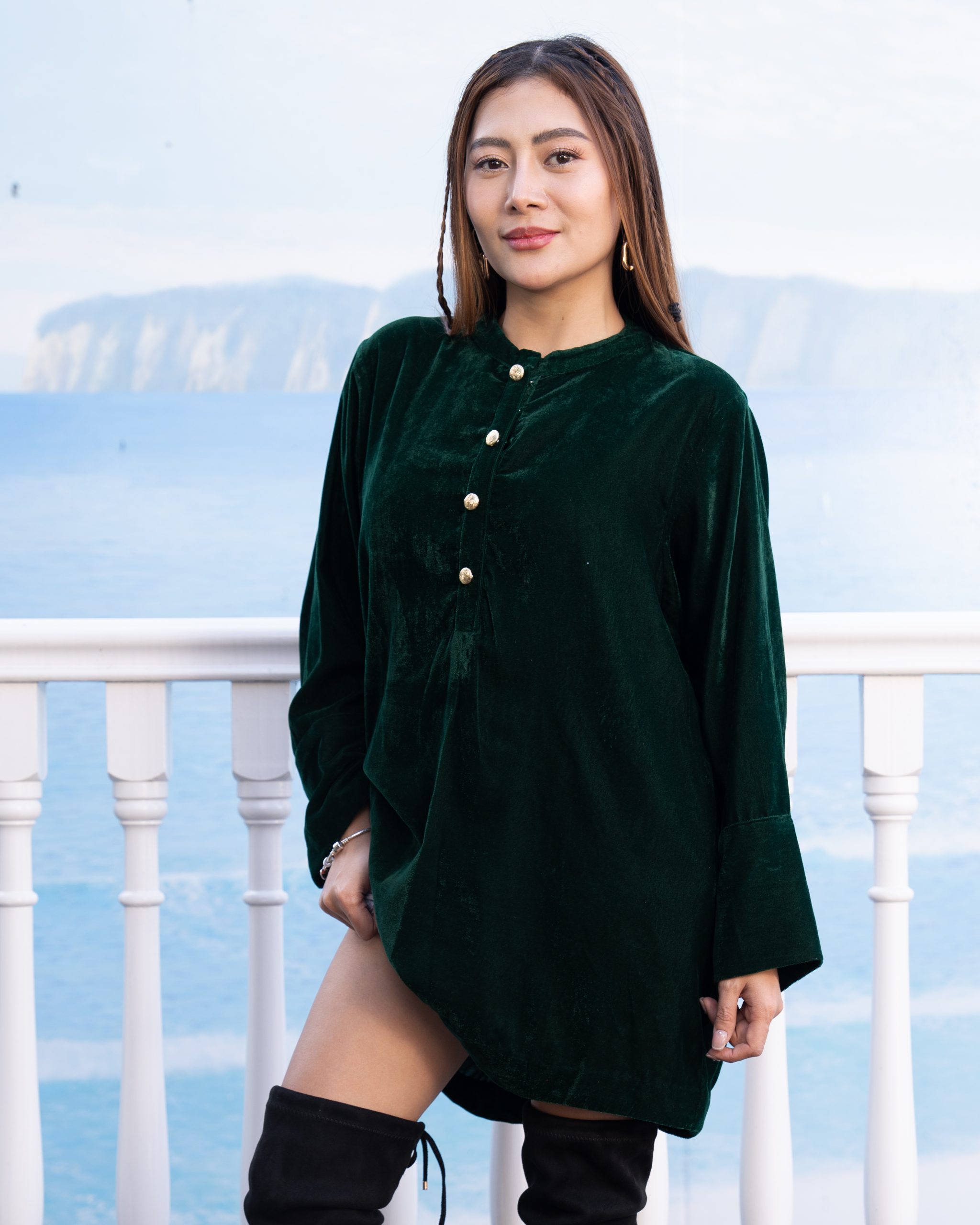 The Emerald Velvet Top offers a sleek, sophisticated look made from luxurious silk velvet. Its rich emerald color and refined design make it perfect for evening wear or formal events, adding a touch of elegance to any outfit.