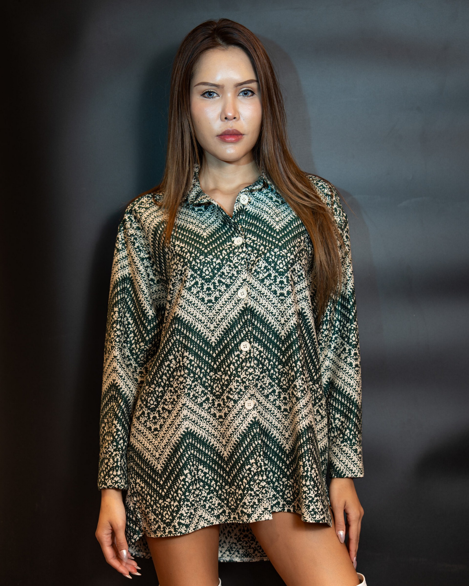 The Green Classic Shirt combines comfort with style, featuring a white-green pyramid design on soft cotton. This versatile shirt is perfect for casual or smart-casual wear, offering a breathable and comfortable fit.
