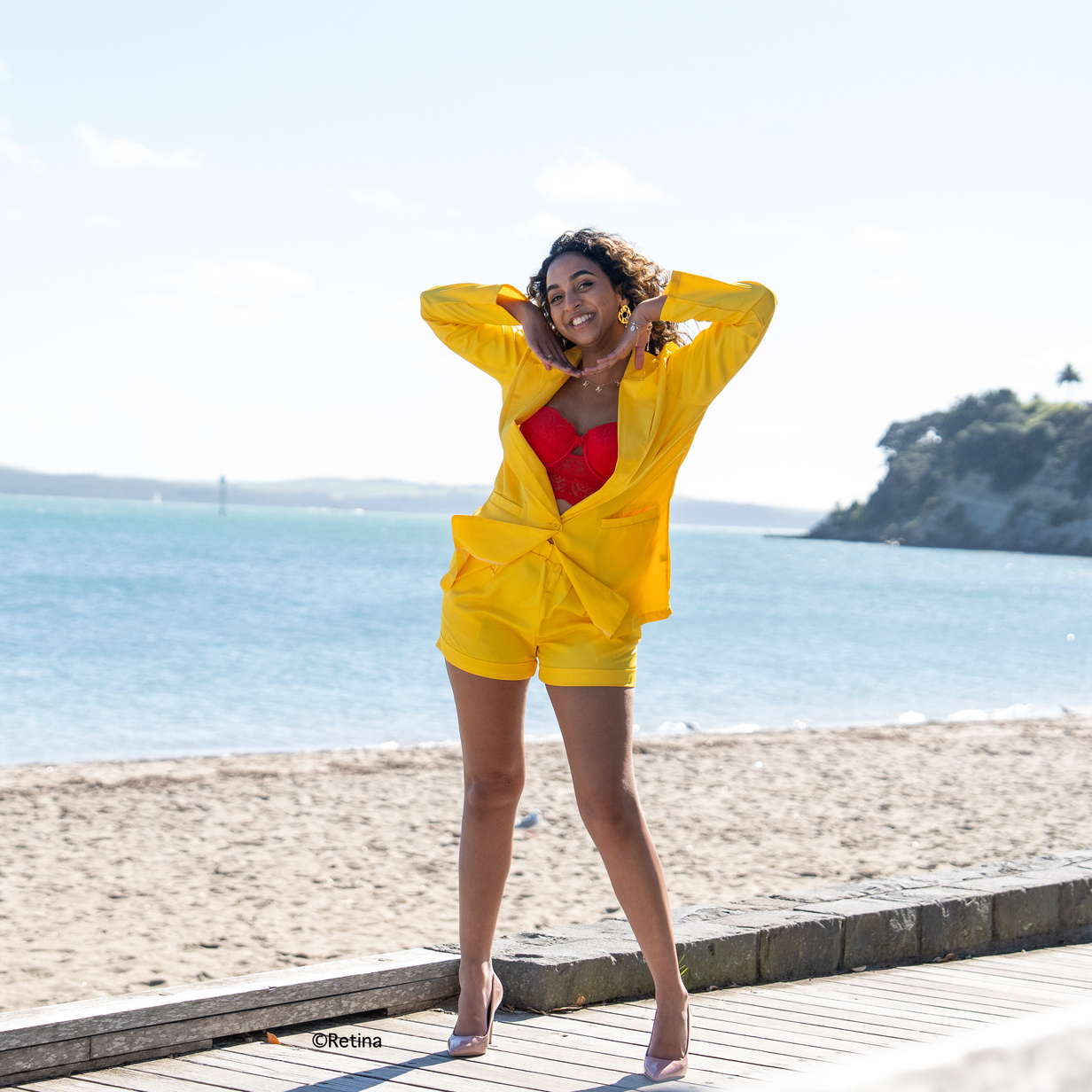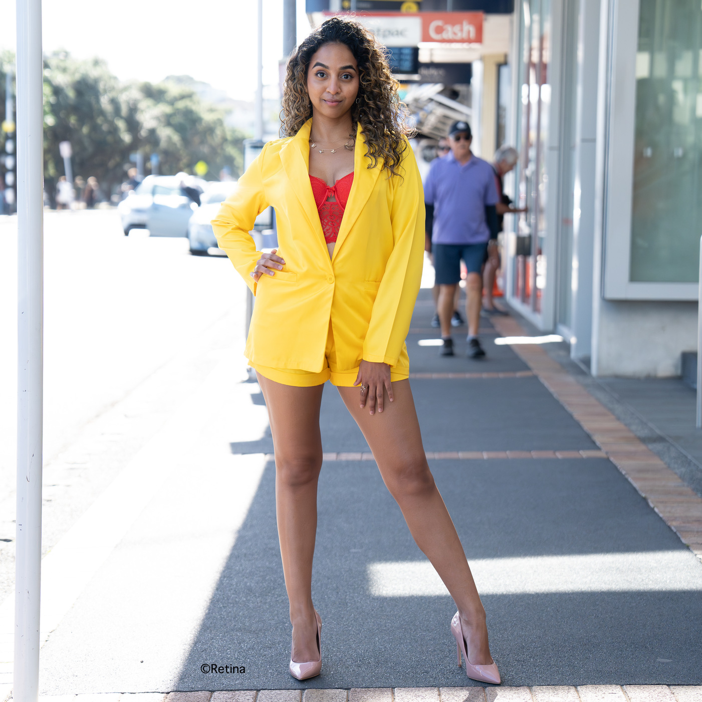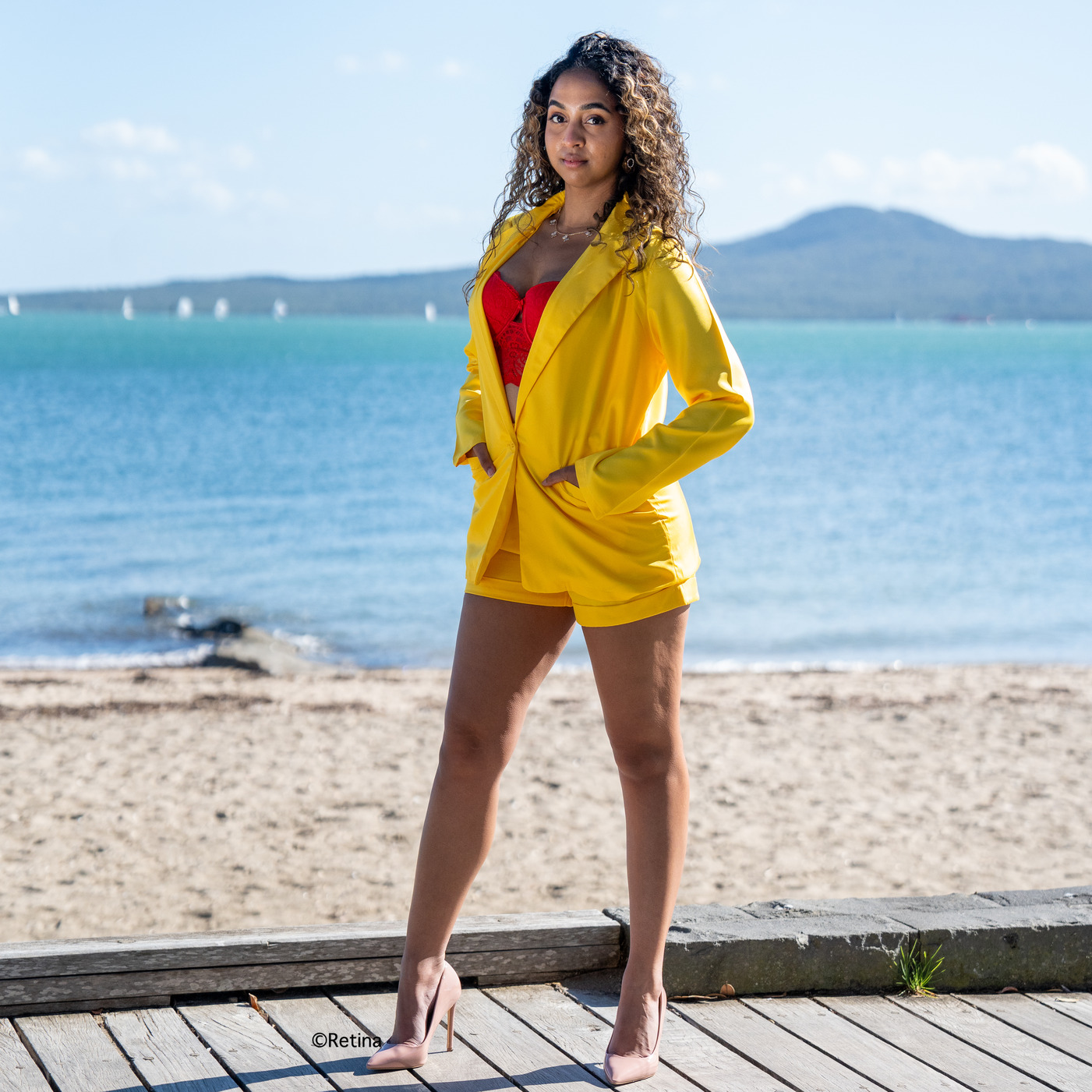 Oversized blazer with matching high waist shorts. This stylish set can be paired with any color heel or sneakers depending on the occasion. The versatile design is perfect for any season and occasion, offering a blend of comfort and chic elegance. The blazer features a relaxed fit and the shorts have a flattering high-waisted design.