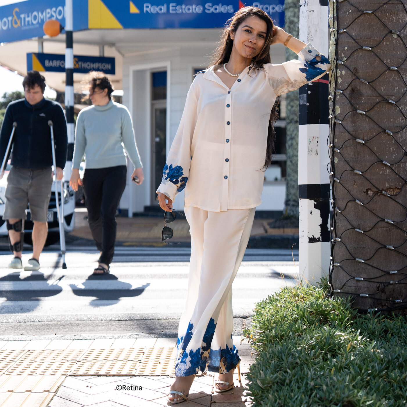 Pure Crepe Floral Cord Set, elegant and sophisticated, perfect for formal occasions. The set features a floral design that adds a touch of femininity and grace. The lightweight crepe fabric drapes beautifully, ensuring both comfort and style.